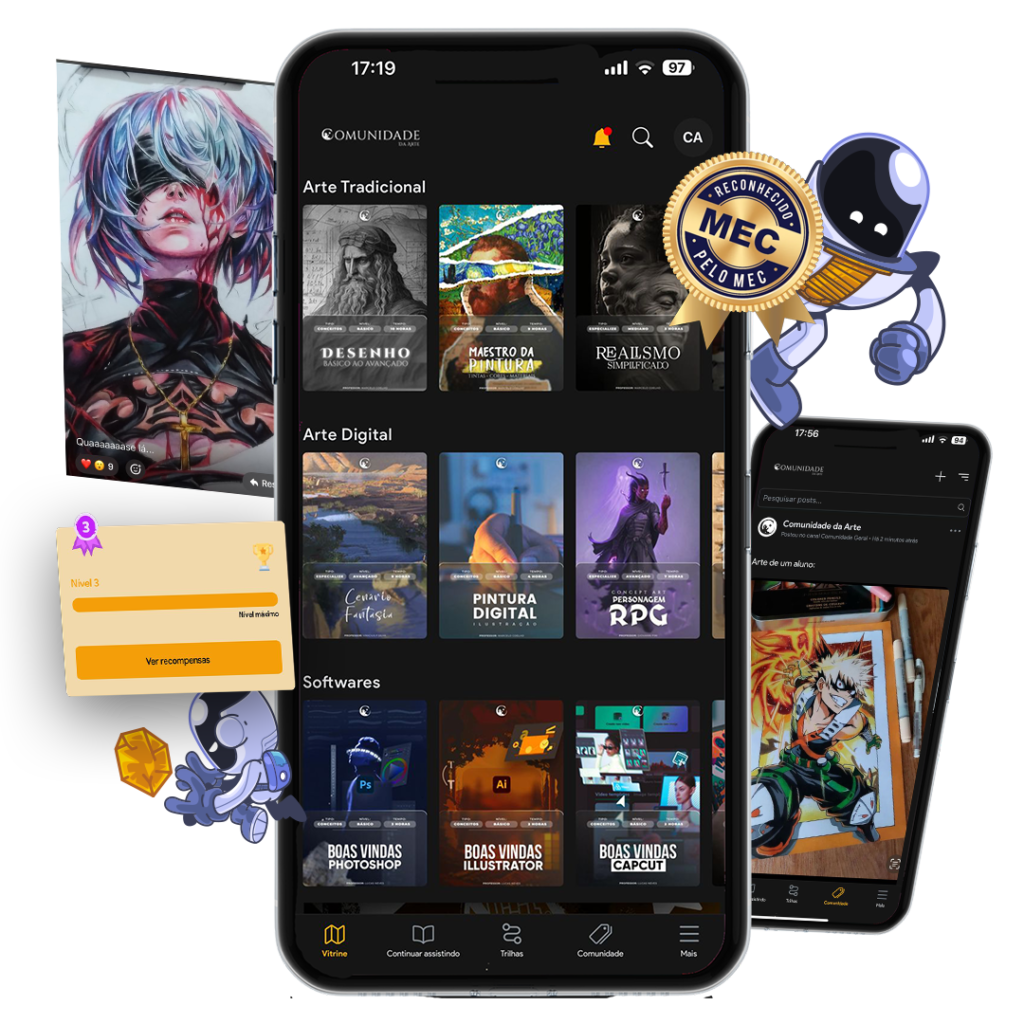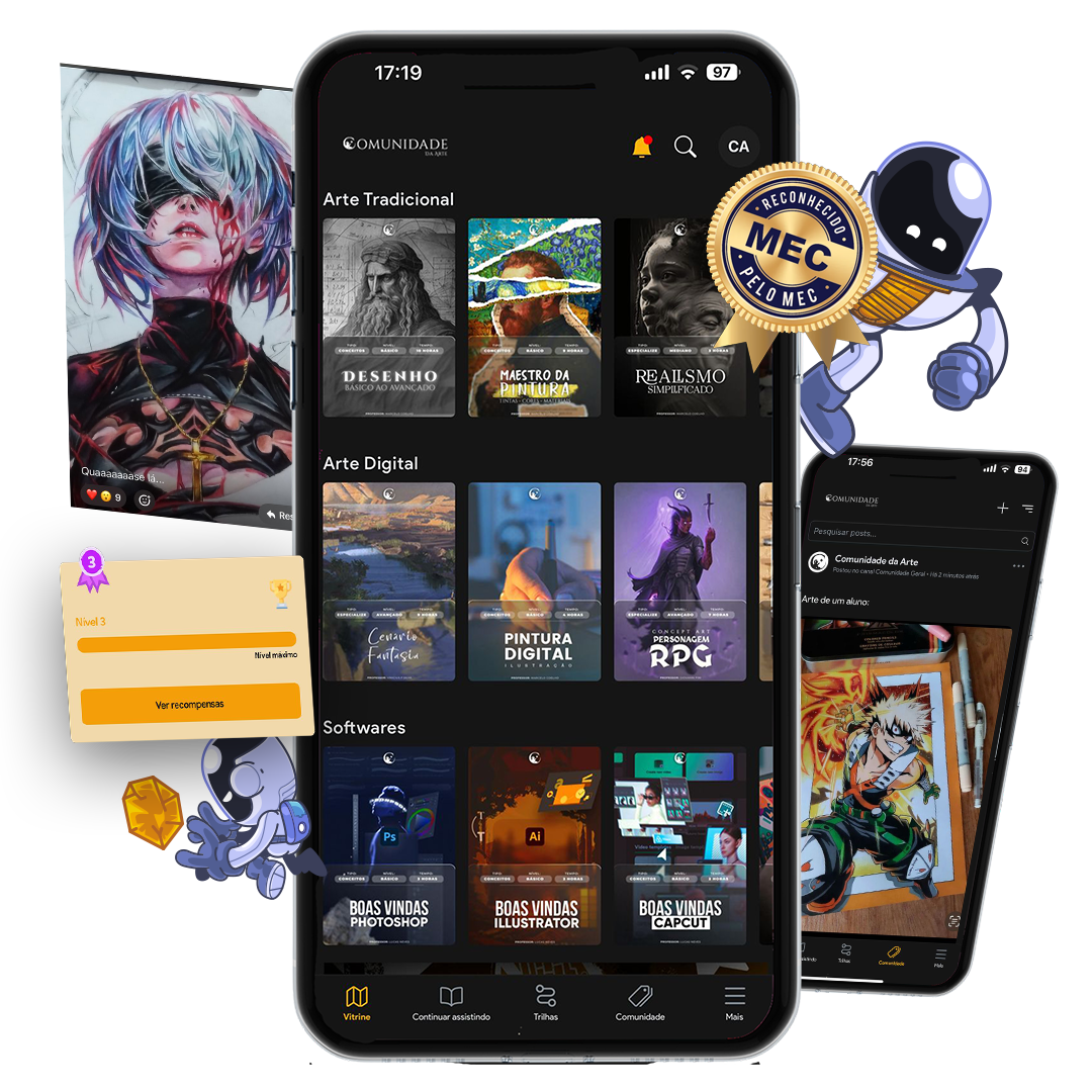 Quem faz parte da Comu Academy, tem o kit completo para se tornar e evoluir como Artista, tudo isso junto a nosso conjunto de entregas presente no ecossistema, o melhor de tudo, você terá a liberdade de escolher praticar por hobby ou de forma profissional, e ainda assim fazer parte da Comunidade!